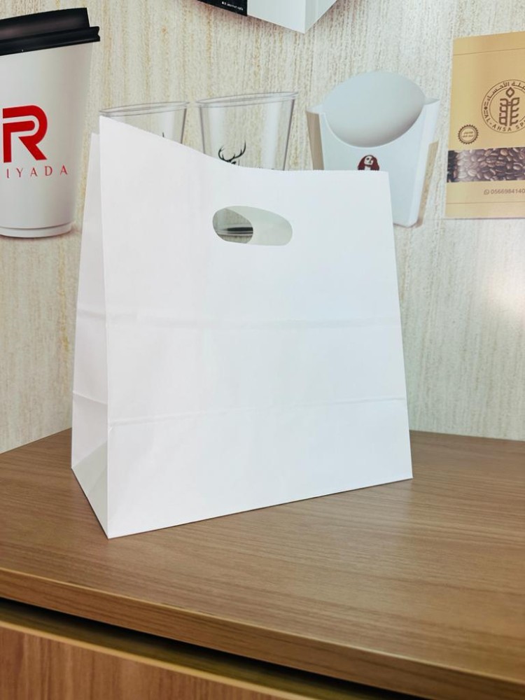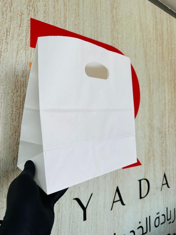 - اسم المنتج: اكياس ورقية مقبض ابيض